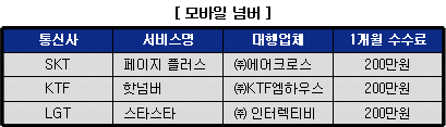 이러한 WINC기반의 망개방 관련 서비스들과는 달리 통신사에 종속되는 서비스가 있다. '모바일 넘버'라고 부르는 이 서비스는 각 통신사별로 다른 이름을 가지고 있지만 통상 별별 서비스, 스타스타서비스, 이벤트 넘버라고 부른다.