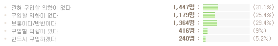 사용자가 알아서 잘 답변할 만한 설문을 가지고 기우를 하시는 것 같아 써 본 겁니다. 실제로 3번 설문에서 2위가 '편리한 인터넷 사용'입니다. 풀브라우징이 그 정도 영향을 끼친 것이라고 봅니다. 혹시 결과값이 예상보다 낮게 나와서 실망하신 것인지?